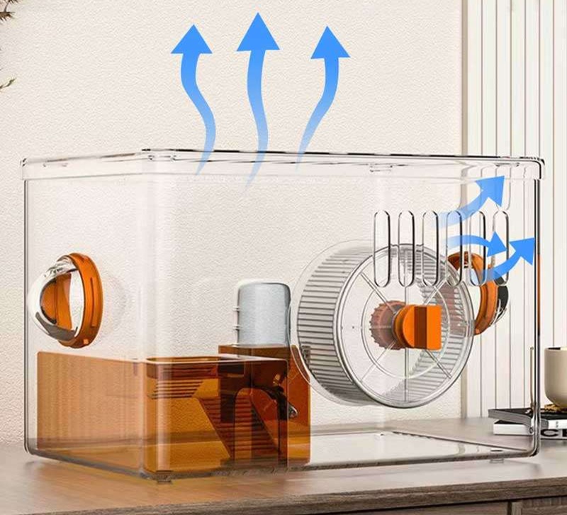 高い透明度を誇るアクリル素材を使用したハムスターケージで、まるで水族館のような美しい仕上がりです。
