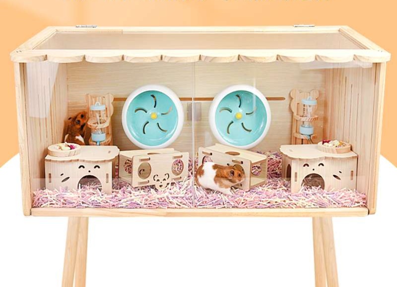 ハムスターケージデカい木製観察窓付き快適住宅