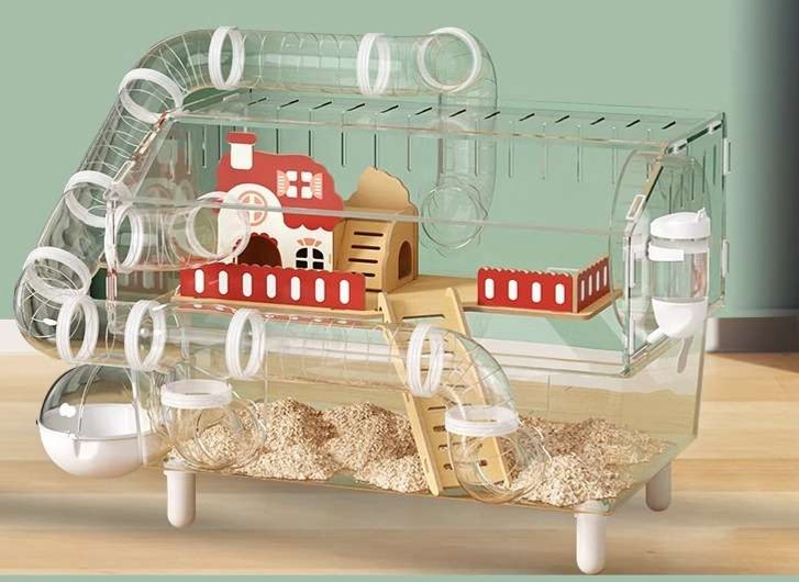 スロープや階段を備えたこの多機能ケージは、大きいゴールデンハムスターの運動能力を存分に活かせます。