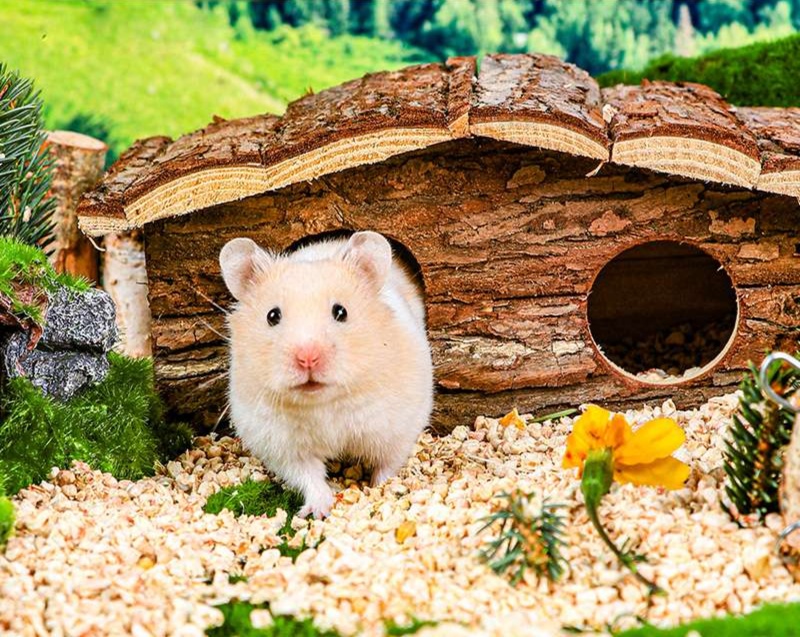 自然な木の香りと質感が、ハムスターの本能的な住環境を再現しています。