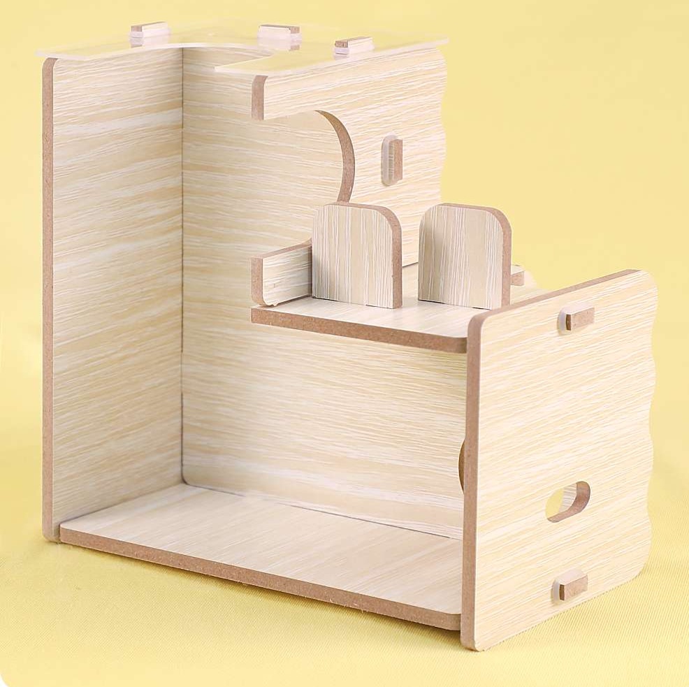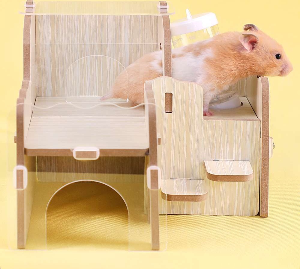 高品質な木製ハムスターケージ、多層式の住居が特徴。耐久性のある木材を使用し、階段状の設計で小動物が自由に移動可能。給水ボトルの取り付けもでき、出入り口や遊び場が充実した構造。お手入れも簡単で、ハムスターが安全に活動できる快適なハウス環境を提供し、愛するペットにぴったりの住まいとなります。