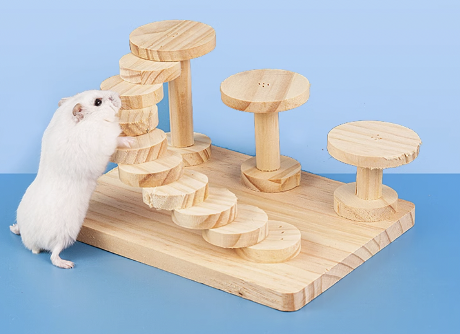 木材を丁寧に磨き上げることで、ハムスターが安全に遊べる優しい仕上がりに