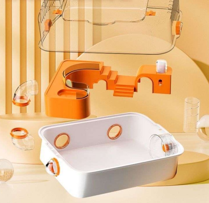 機能的なハムスターケージは、給水・運動・休息エリアを分割設計。 プラスチック素材の本体にパイプでエリアを連結し、小さなペットの快適な生活環境を実現。 透明パネル採用で日々の様子を観察しやすく、分解できるため清潔維持も簡単な実用的な飼育ケース。