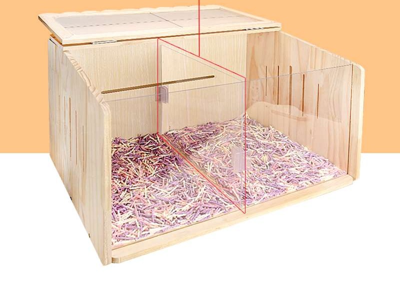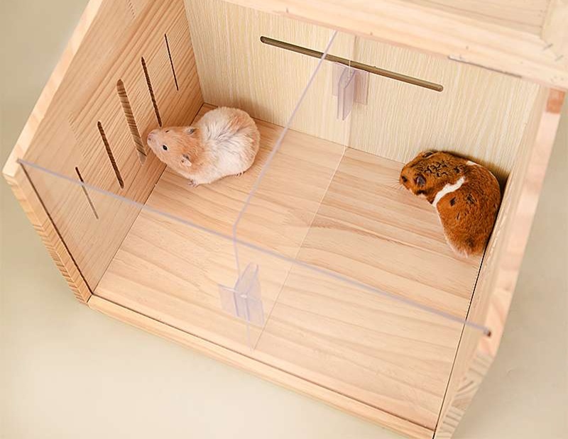 木製のハムスターケージは、透明なアクリル板で仕切られています。サイズは50-100cmに対応し、清潔で快適な飼育環境を提供します。通気性に優れた設計により、小動物が安心して過ごせる住まいを実現しました。自然素材の温もりを感じられるこのケージで、愛するハムスターの健康を守りましょう。