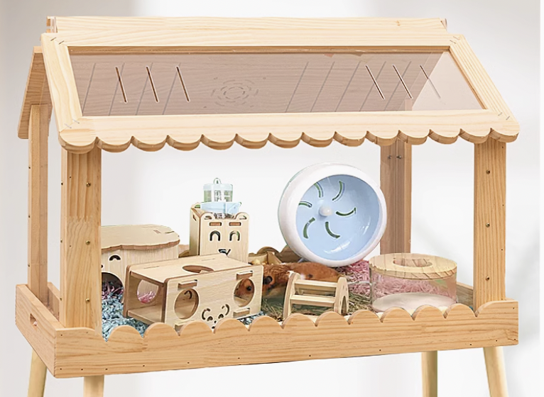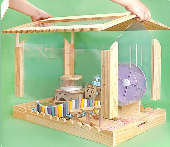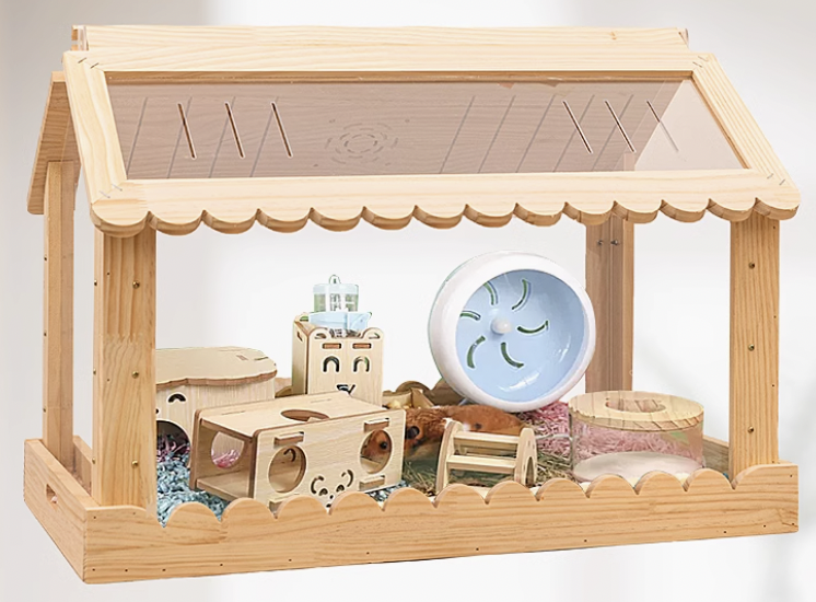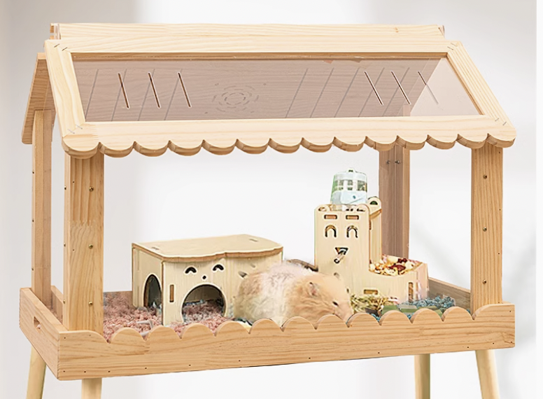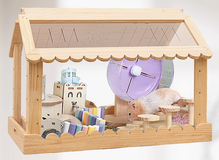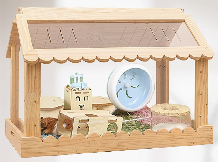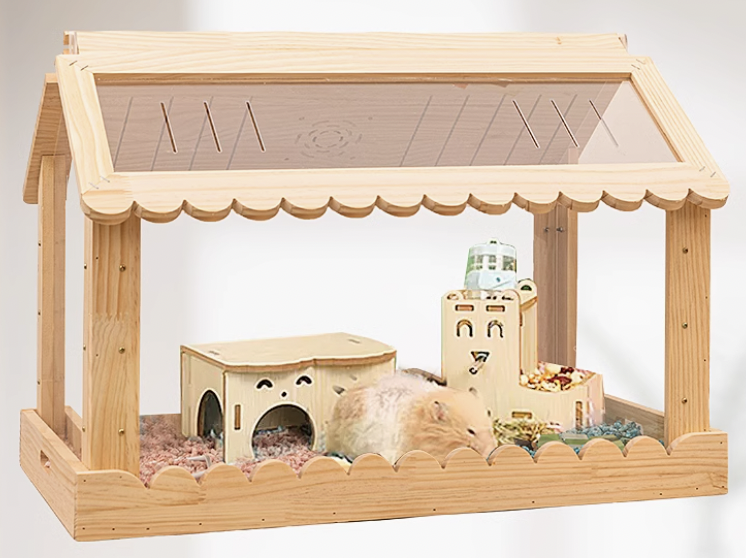 温かみのある天然木と透明アクリルを使用した木製ハムスターケージが登場。両面開閉式設計により、お手入れが簡単でペットの様子を360度観察できるのが魅力。屋根付きの家型デザインは安全性を確保しながら、開放感も演出。愛するハムスターにとって、快適で安心できる理想的な住まいを提供します。