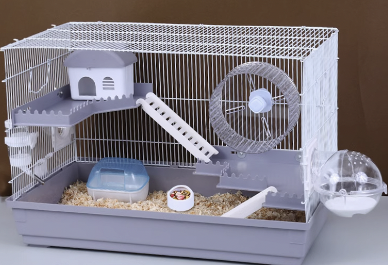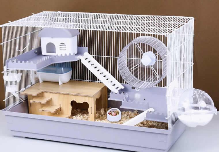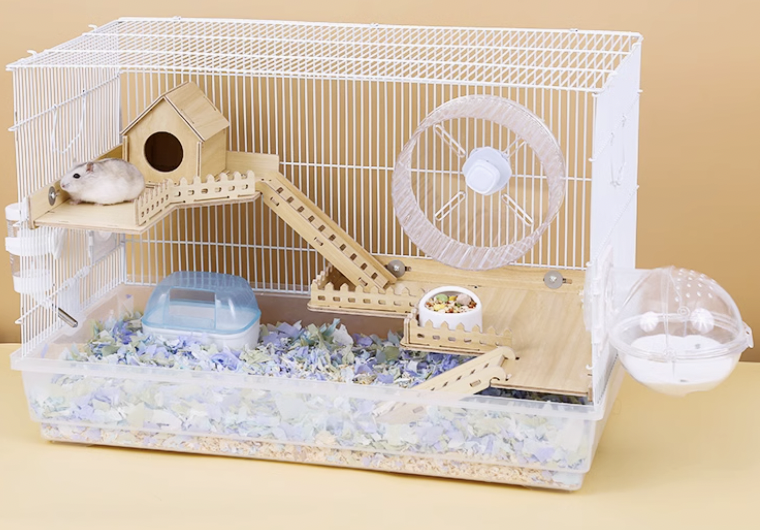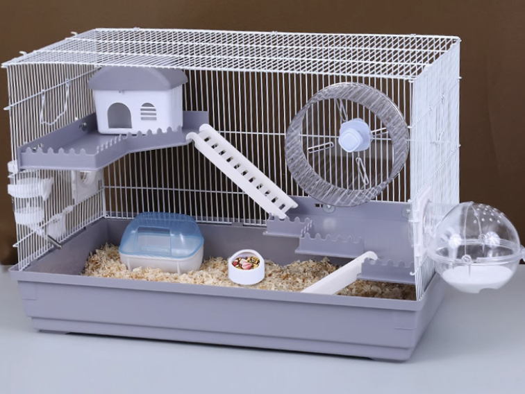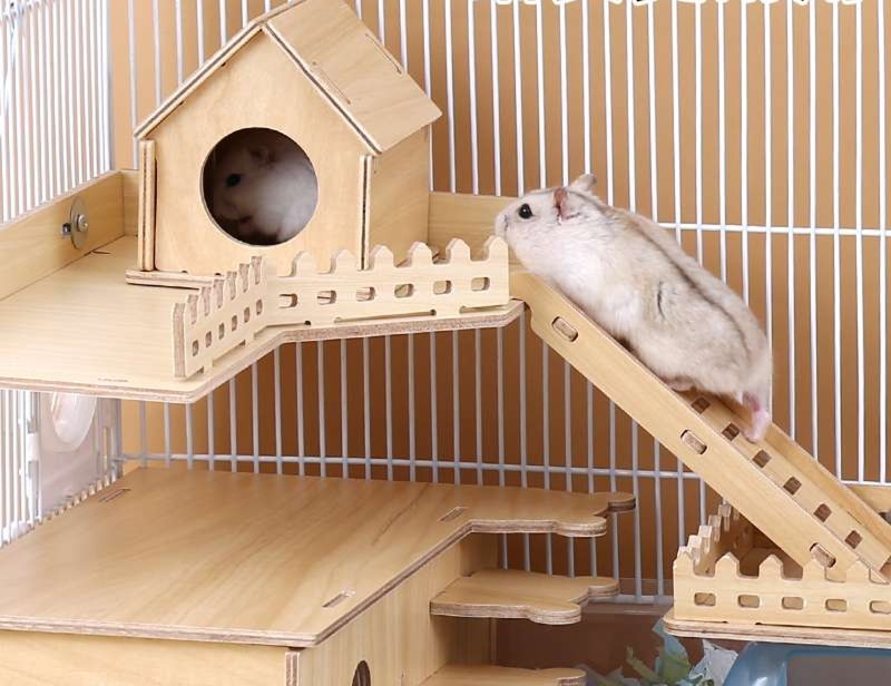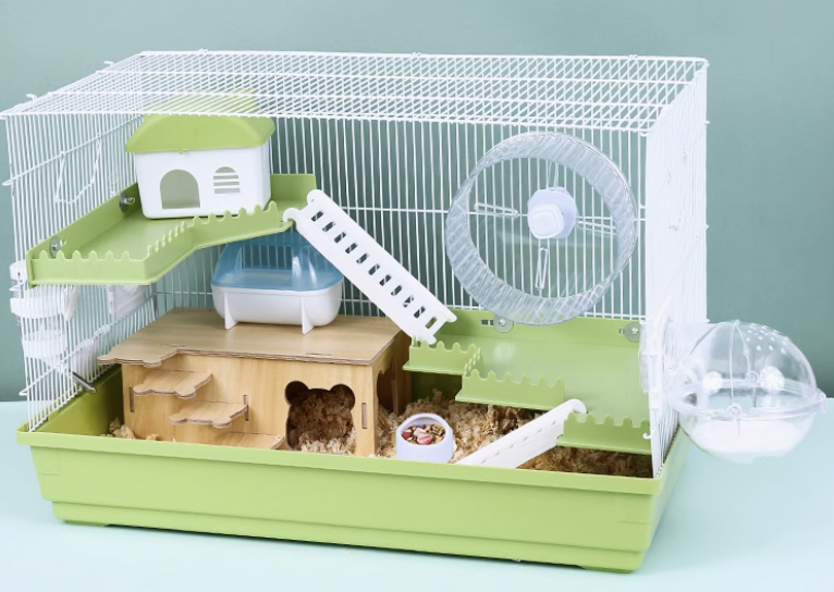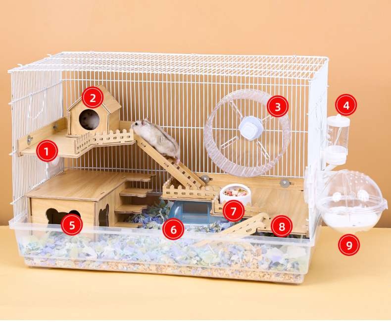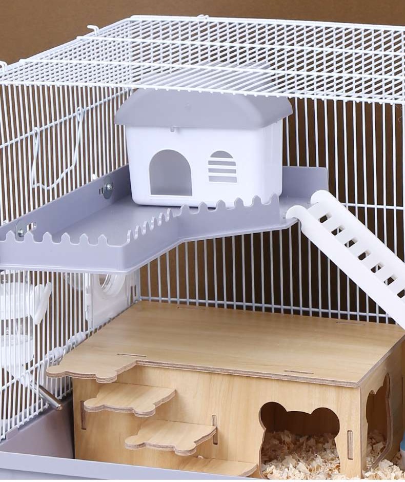 頑丈な網で囲まれた二階建ての木製ハムスターケージ。自然素材の温もりを感じる遊び場とスロープが、活発なハムスターの運動不足を解消します。給水器と回し車も標準装備され、快適な住環境を提供。清潔な床材を使った広々とした底部設計で、理想的な飼育環境を実現。愛するペットにぴったりのスペースをお届けします。