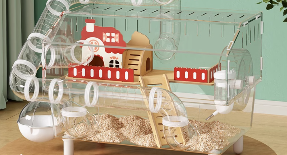 透明プラスチック製のハムスターケージは、全面クリア設計により愛らしいハムスターの動きをしっかり観察できる。複数の円形トンネルと小屋があり、上下に移動できる快適な住環境を実現。広々としたスペースには給水器も搭載されており、通気性も抜群。お手入れが簡単なプラスチック素材を使用したこの多機能ハウスは、ハムスターの健康と幸せをサポートする理想的な住まいとなる。