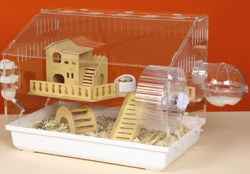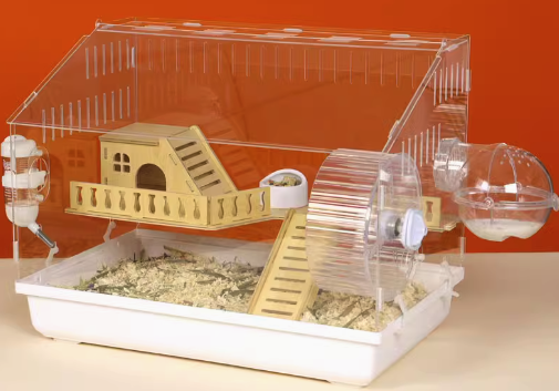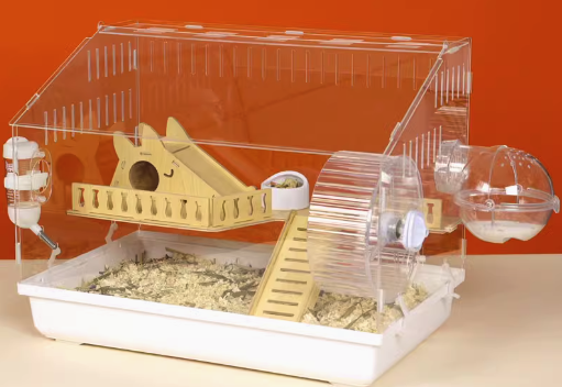 給水器と運動用車輪付きで、小動物の快適な住環境を提供。