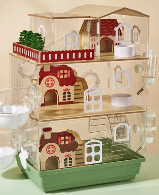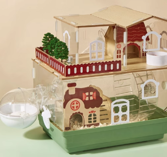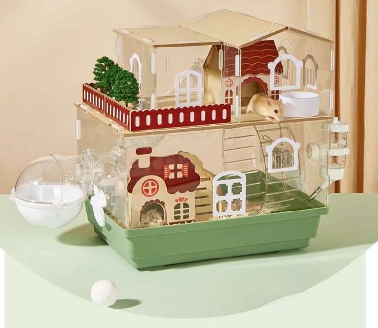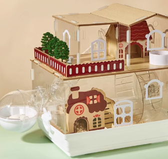 高級感あふれる木製パーツと透明アクリルを融合した二階建てハムスターケージ。 ベランダ付きの別荘風デザインで、愛ハムに広々とした暮らしを提供。 通気性抜群で快適な住環境を実現し、毎日のお手入れも簡単。 組立も直感的で、ハムスターの理想的な住まいをご提供します。