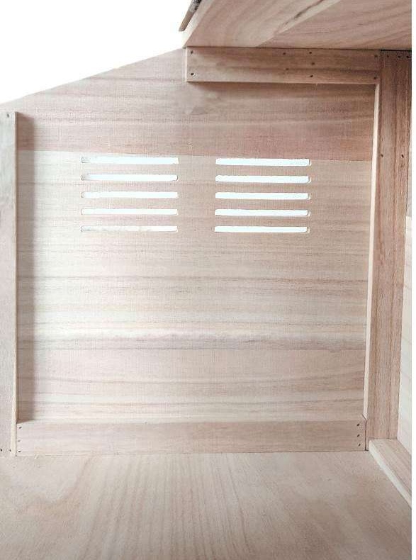 側面の通気口が快適な環境を実現し、床材を敷いて清潔さを保てます。