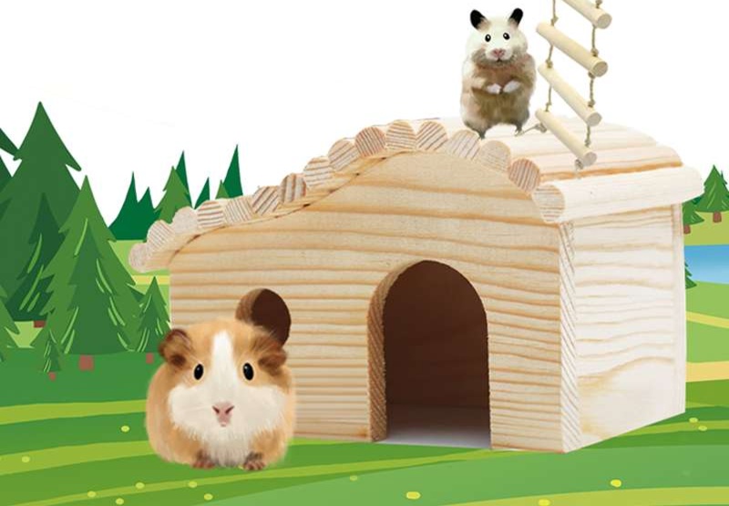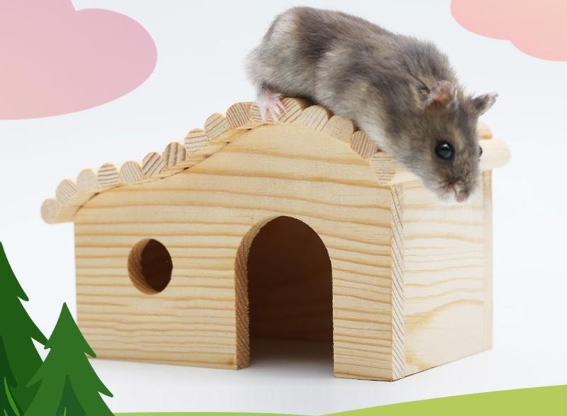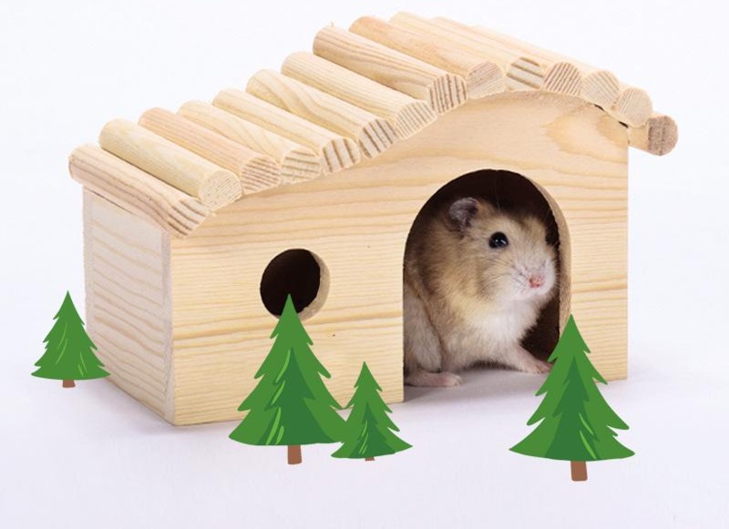 天然木材を贅沢に使用したハムスターケージ用のハウスです。屋根付きで開放的なデザインは、ハムスターが自由に出入りできるよう工夫されています。安心してくつろげる空間を提供し、ストレスの少ない生活をサポートします。おしゃれな見た目で飼い主のインテリアにもマッチし、ハムスターの快適な住環境を実現します。