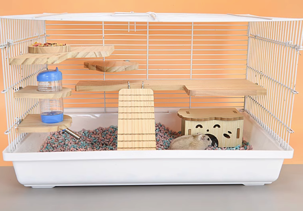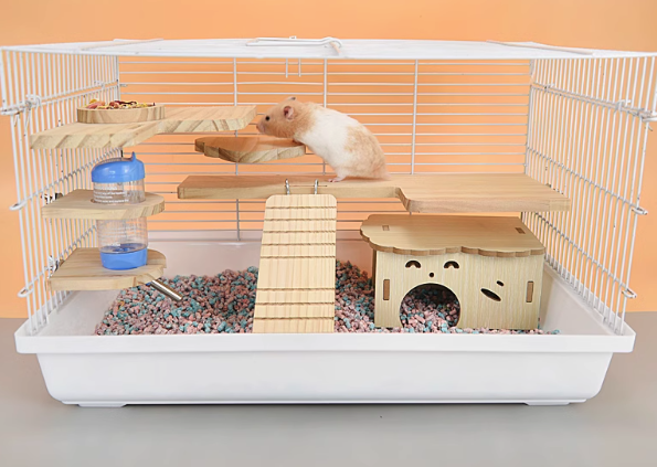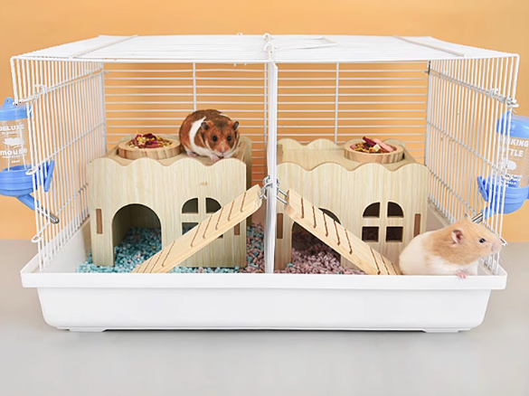 大型ハムスターケージは、木製スロープと遊び場を装備し、網の高さ30センチで安全性を高めています。5~8匹の小動物がゆったりと過ごせる広々とした空間を提供。高機能な給水器や運動用回し車も標準装備し、ハムスターの健康と楽しさをサポートします。快適で安心な住環境を実現したハムスターケージで、愛しいペットたちの毎日を充実させましょう。