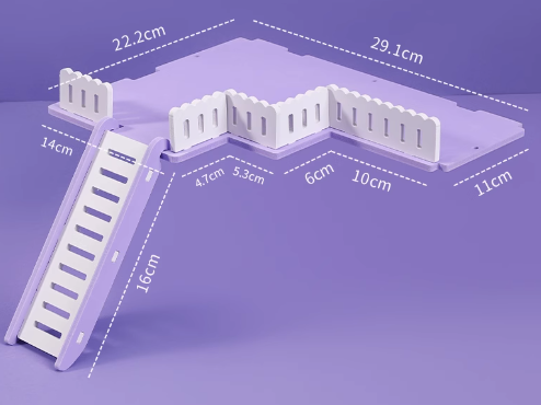 ハムスターケージ内に設置できる二階建てのハウスです。 水洗い可能な素材を使用し、お手入れが簡単です。 階段と柵付きで安全性も考慮された設計になっています。 ハムスターが上り下りを楽しめる遊び場としても最適なハウスです。