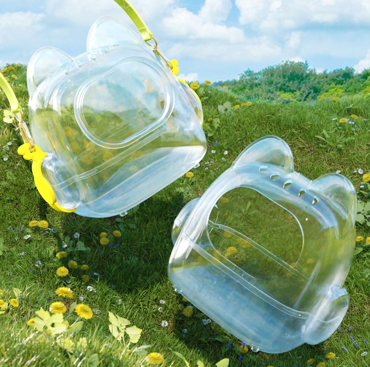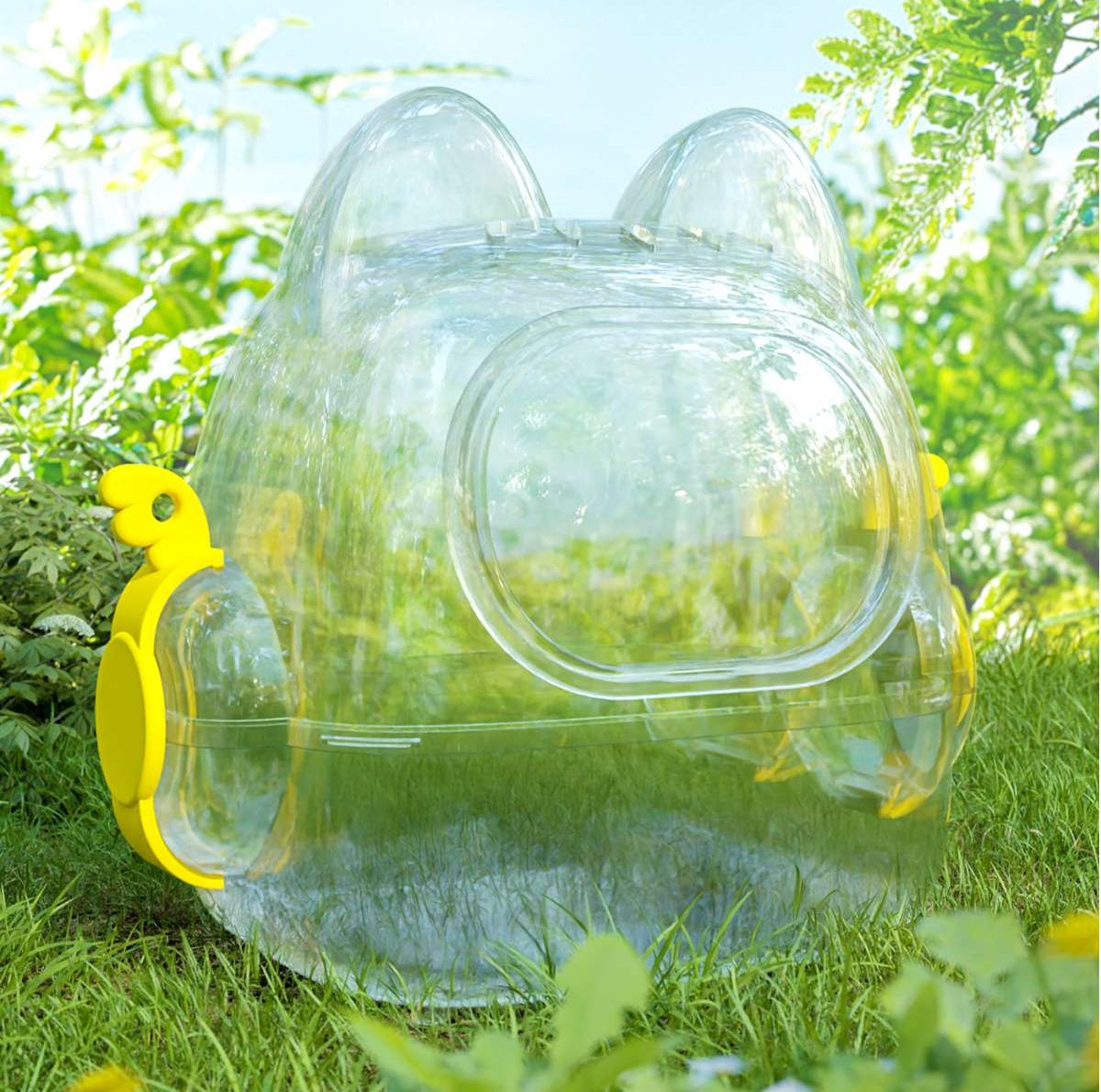 このハムスターケージは、透明で耐久性のあるプラスチックを使用しており、可愛らしい頭部デザインが特徴です。360度の視界を確保し、ペットの様子をどの角度からでも楽しめます。また、小さな通気口と取り外し可能なサイドパーツにより、お手入れもスムーズです。快適な住環境を提供し、愛らしいハムスターの生活をサポートします。