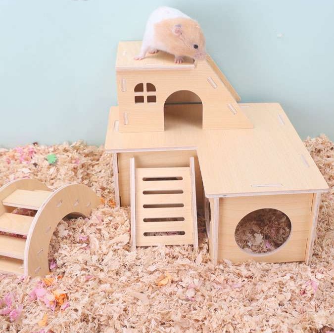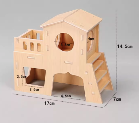 愛らしい木製ハムスターケージ用ハウス。 自由にレイアウトできる複数の部屋と階段で、ハムスターに快適な生活空間を提供します。 組み合わせ自在な可愛いデザインで、お手入れしやすく運動不足解消にも最適。 ハムスターの好奇心を刺激する多様なパーツで、理想的な住まいを作れます。