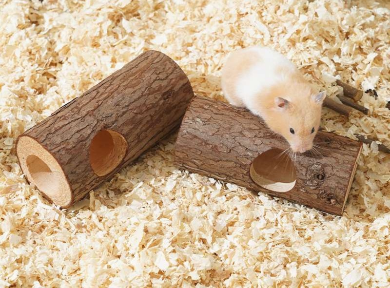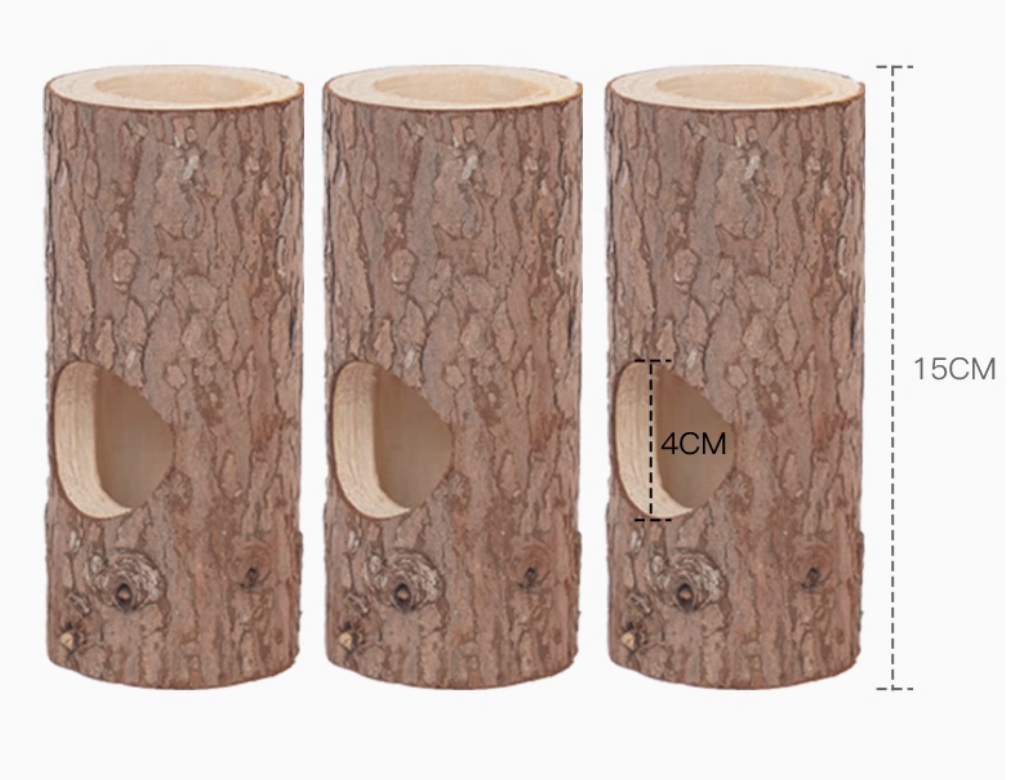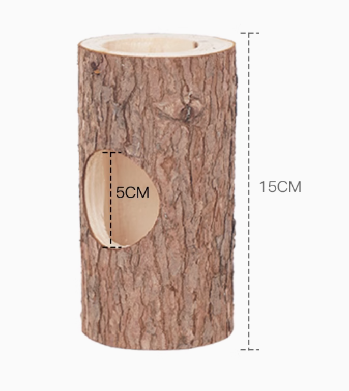 自然の雰囲気を楽しむ木製ハムスターケージ用ハウス。丸太を使用したトンネル型デザインは、ハムスターの好奇心を引き立てる構造となっている。安全性に配慮した素材を採用し、小動物が快適に過ごせる理想的な空間を提供。ペットの探検心を満たすこのハウスで、充実した生活をサポートします。