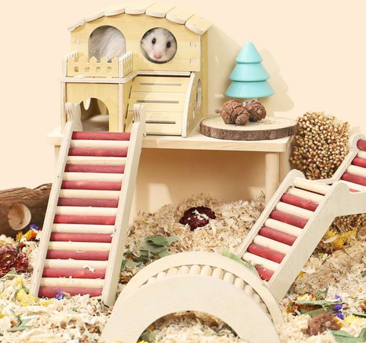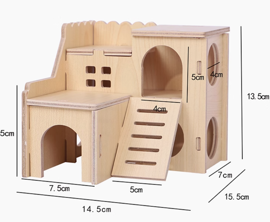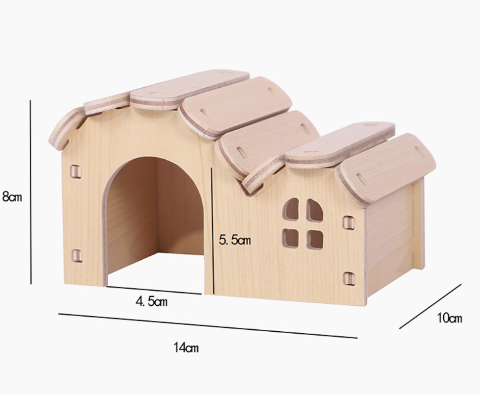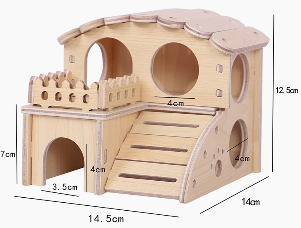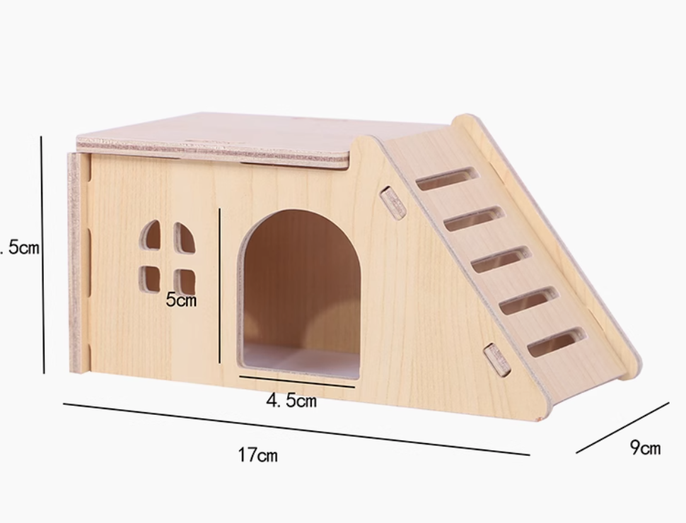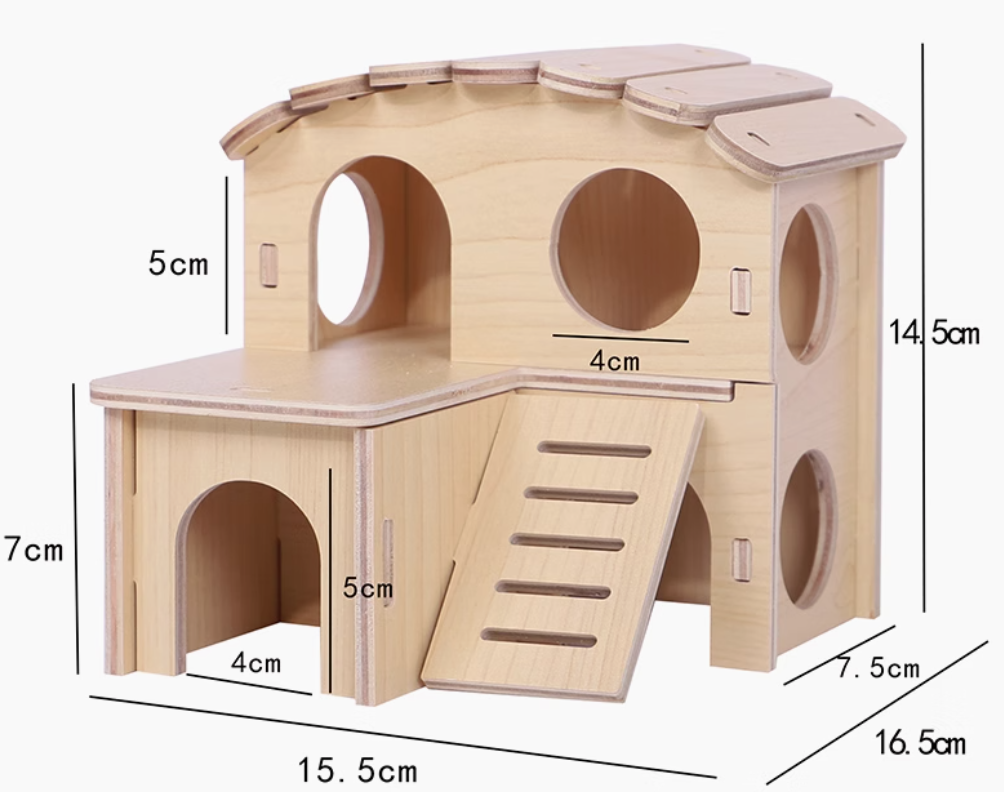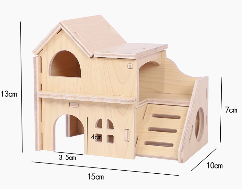 天然木製のハウスは、ハムスターケージにぴったりのアイテム。愛らしい波型の屋根と階段付きの2階建て構造が特徴で、ペットにとって楽しい遊び場を提供します。木材の温もりあるデザインは、インテリアにも自然に溶け込み、飼い主の心を和ませること間違いなしです。ハムスターの快適な生活空間を演出するための理想的な選択肢です。