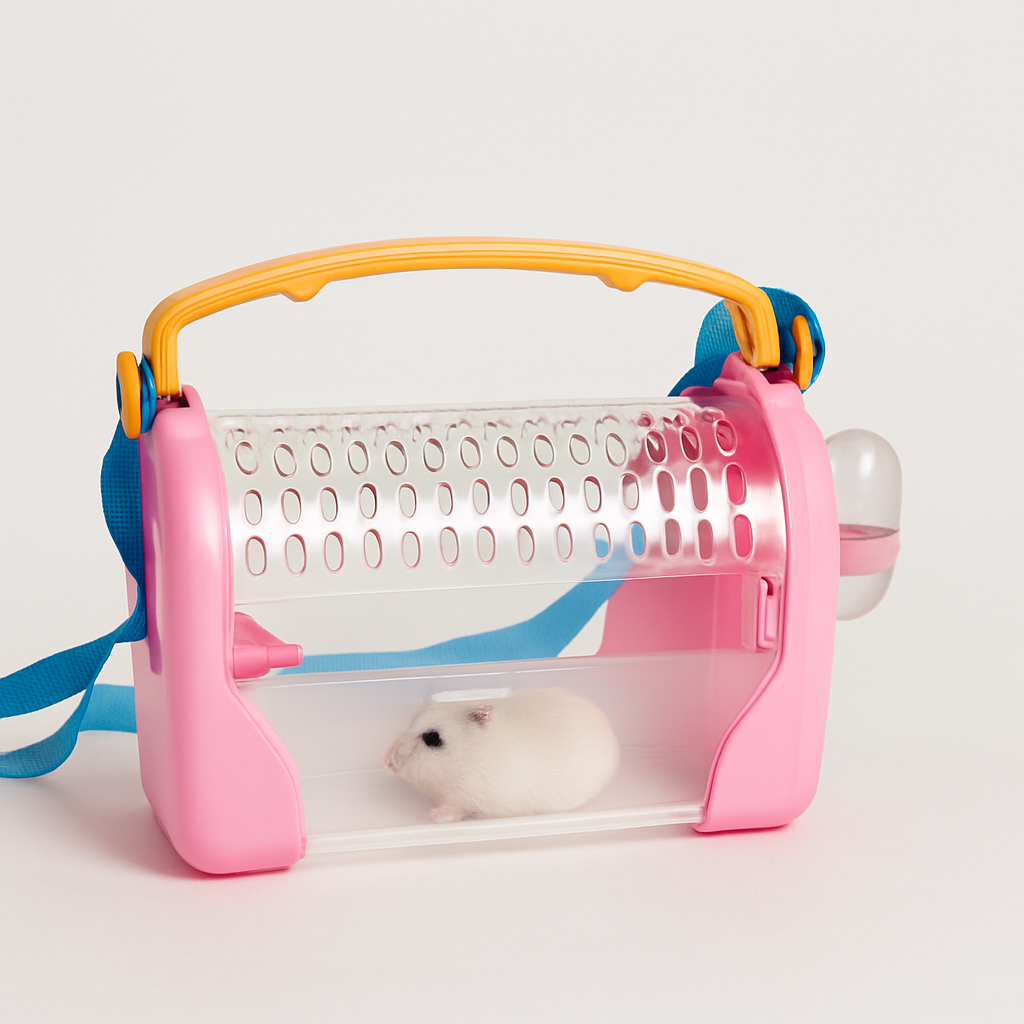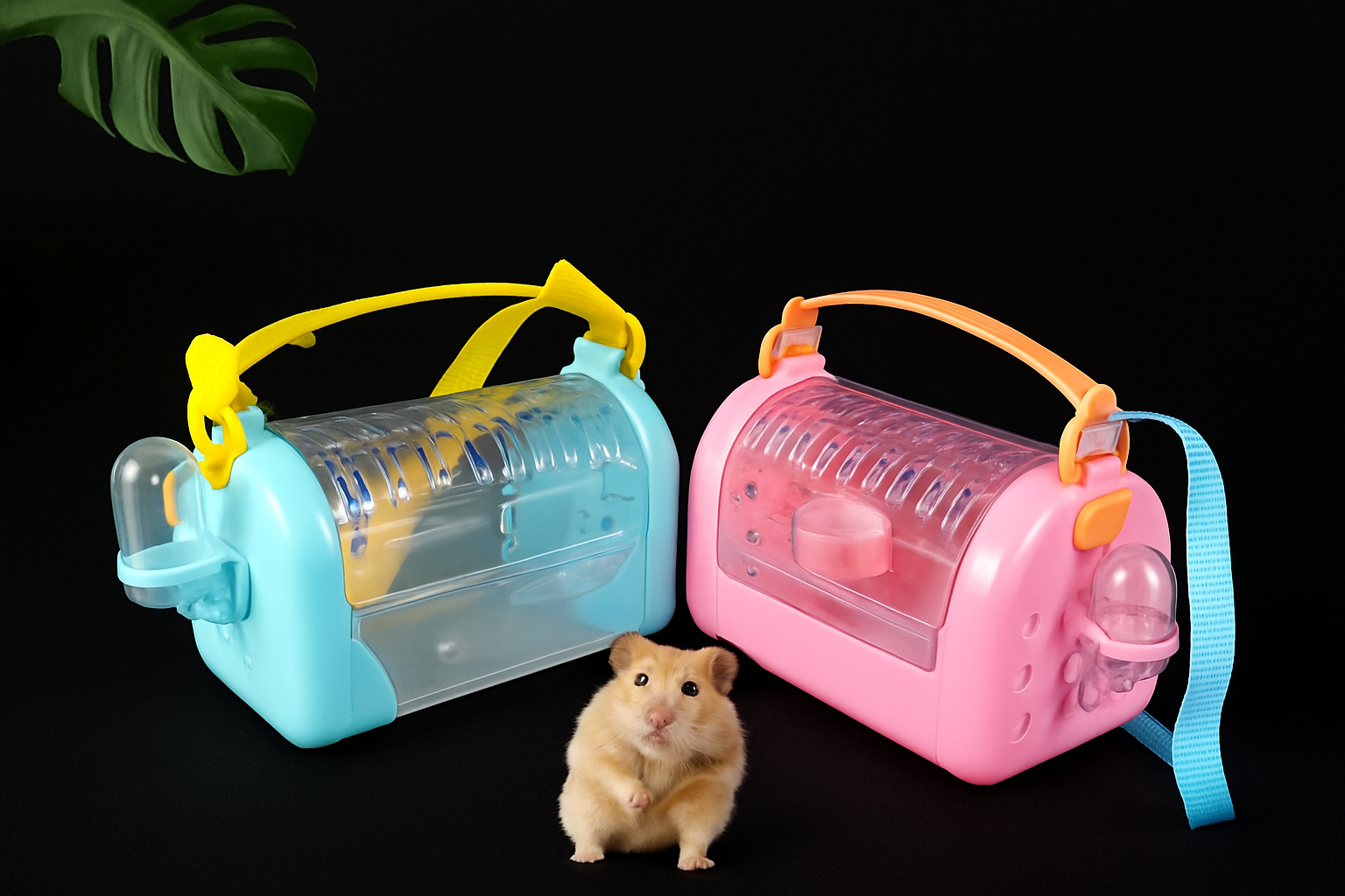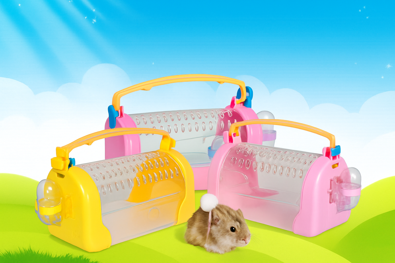 小動物の外出に最適なハムスターケージのプラスチック製携帯ケージです。