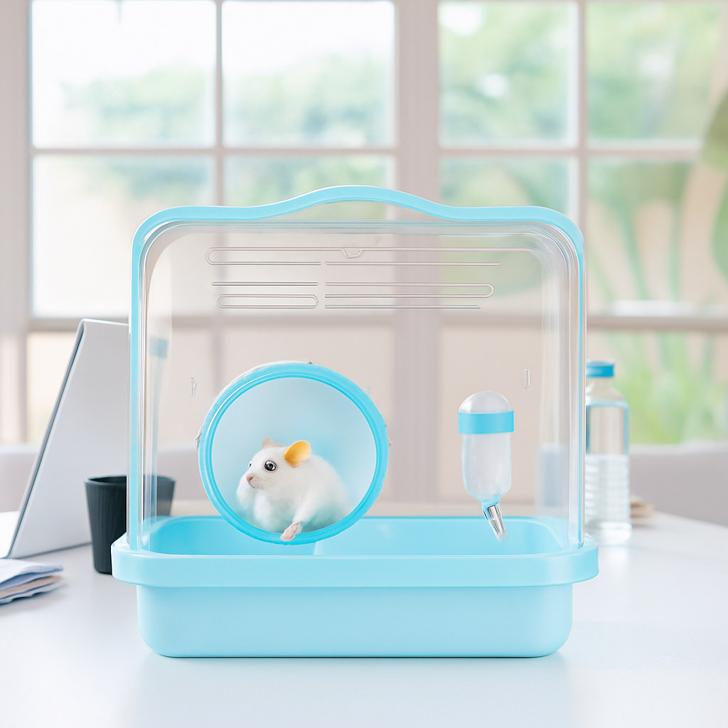 360度全透明設計のハムスターケージで、愛らしいペットの様子をどの角度からも観察できます。