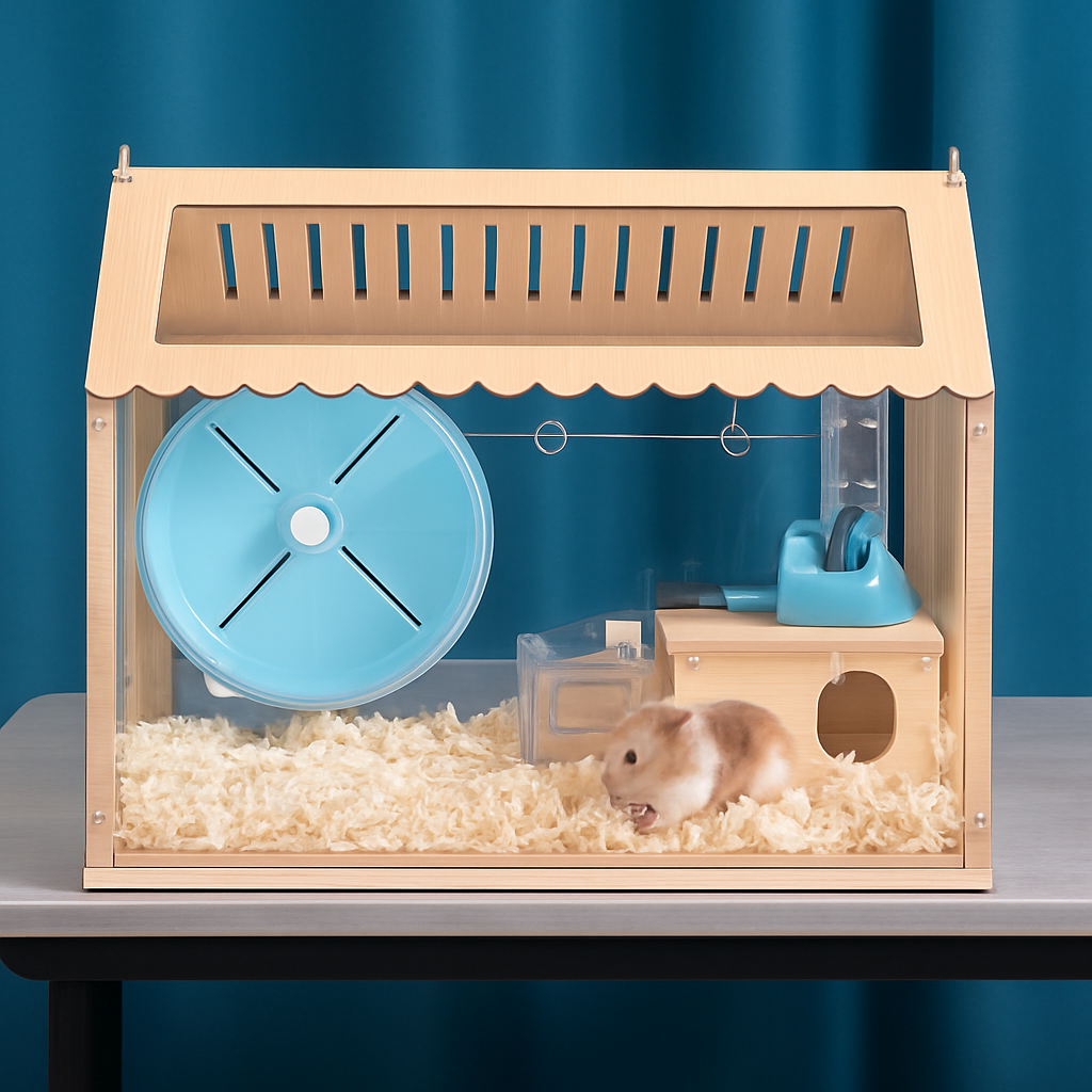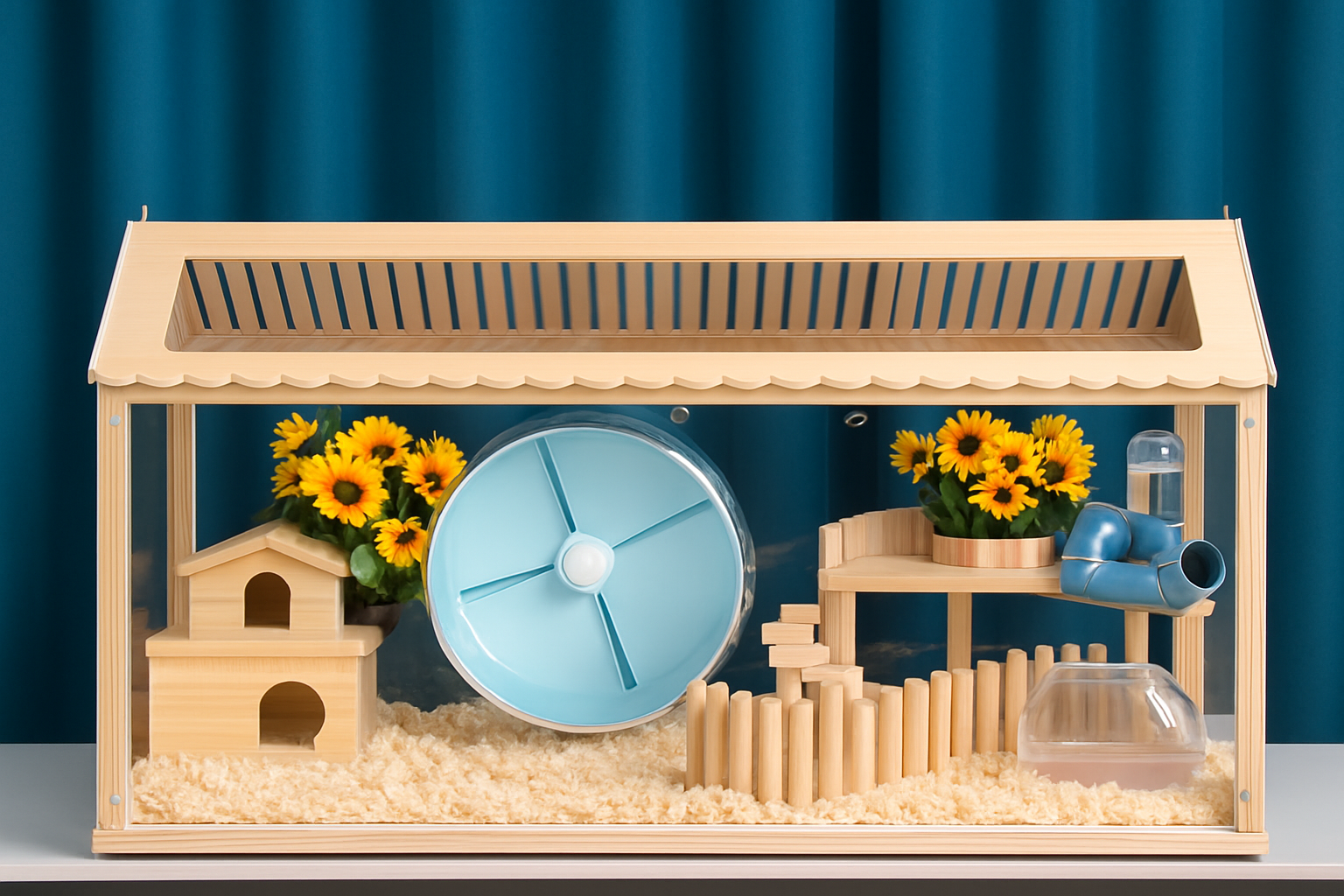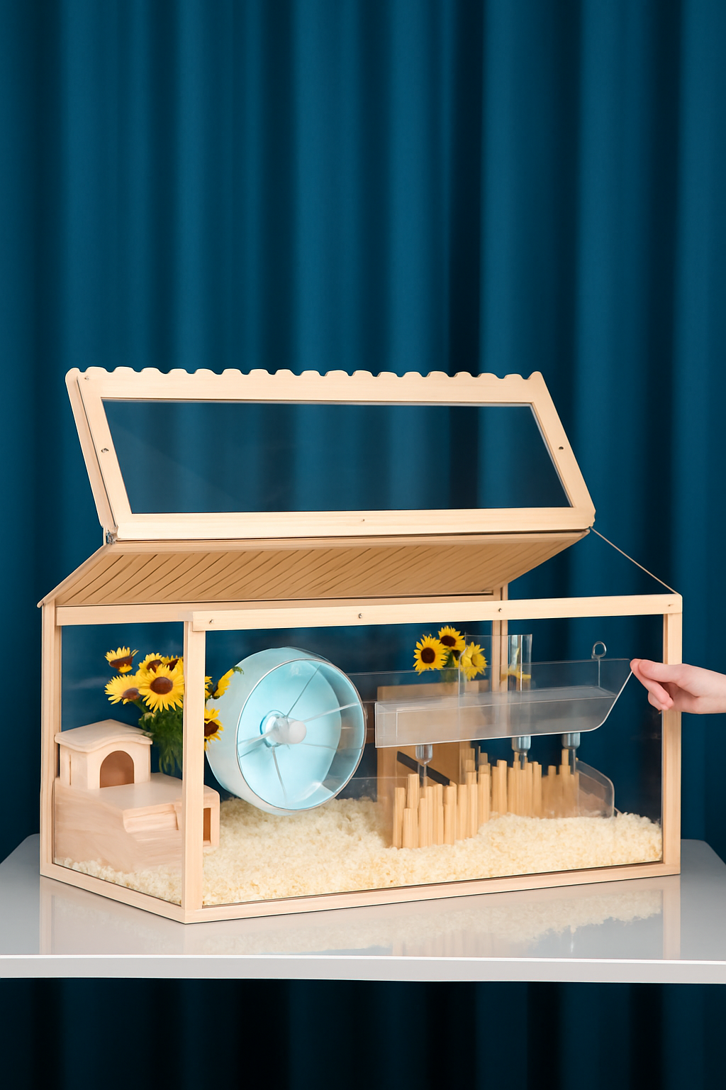 回し車や二階建ての小屋、階段などの充実した付属品で快適な住環境を提供します。