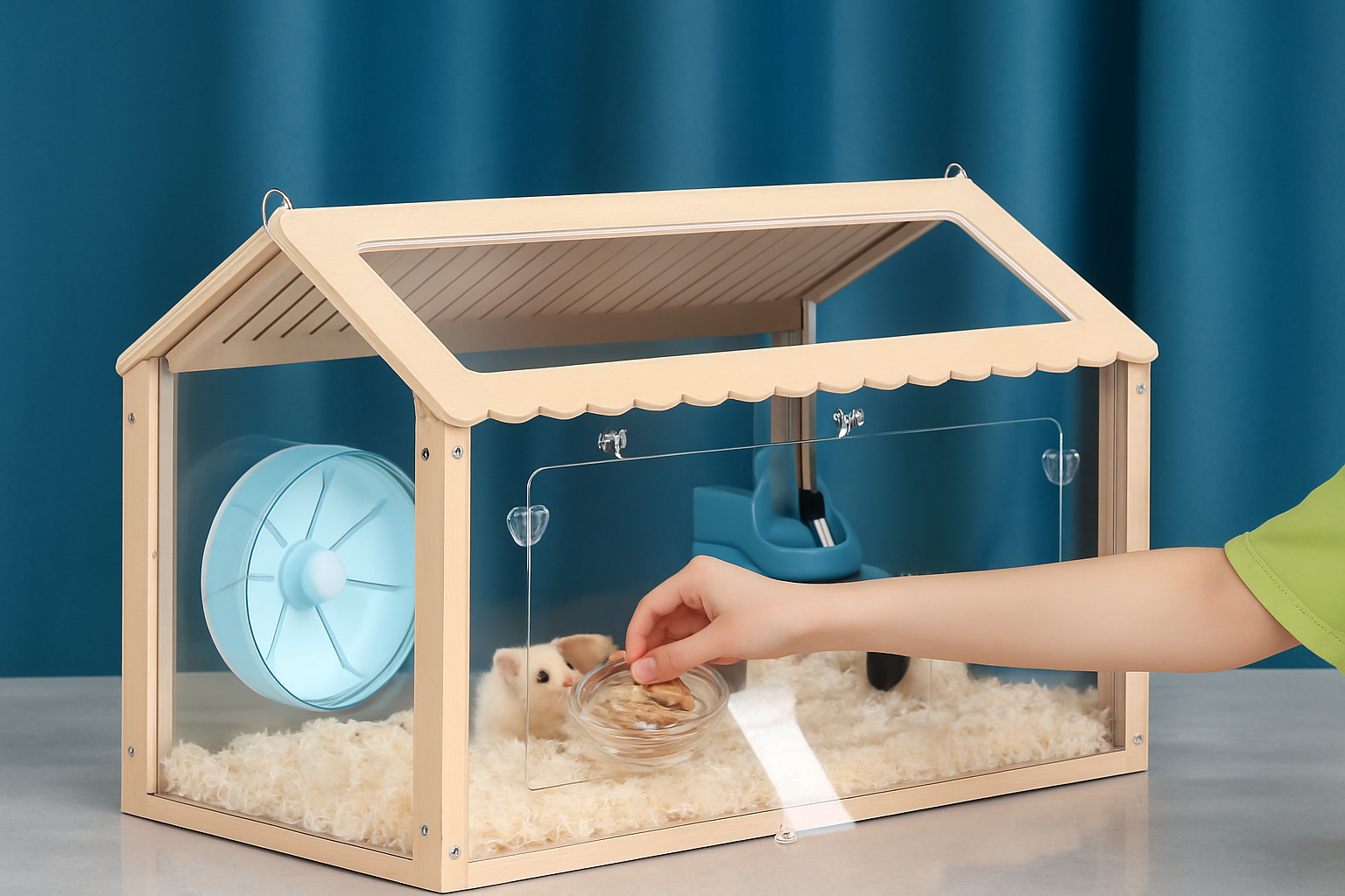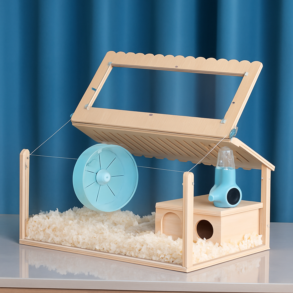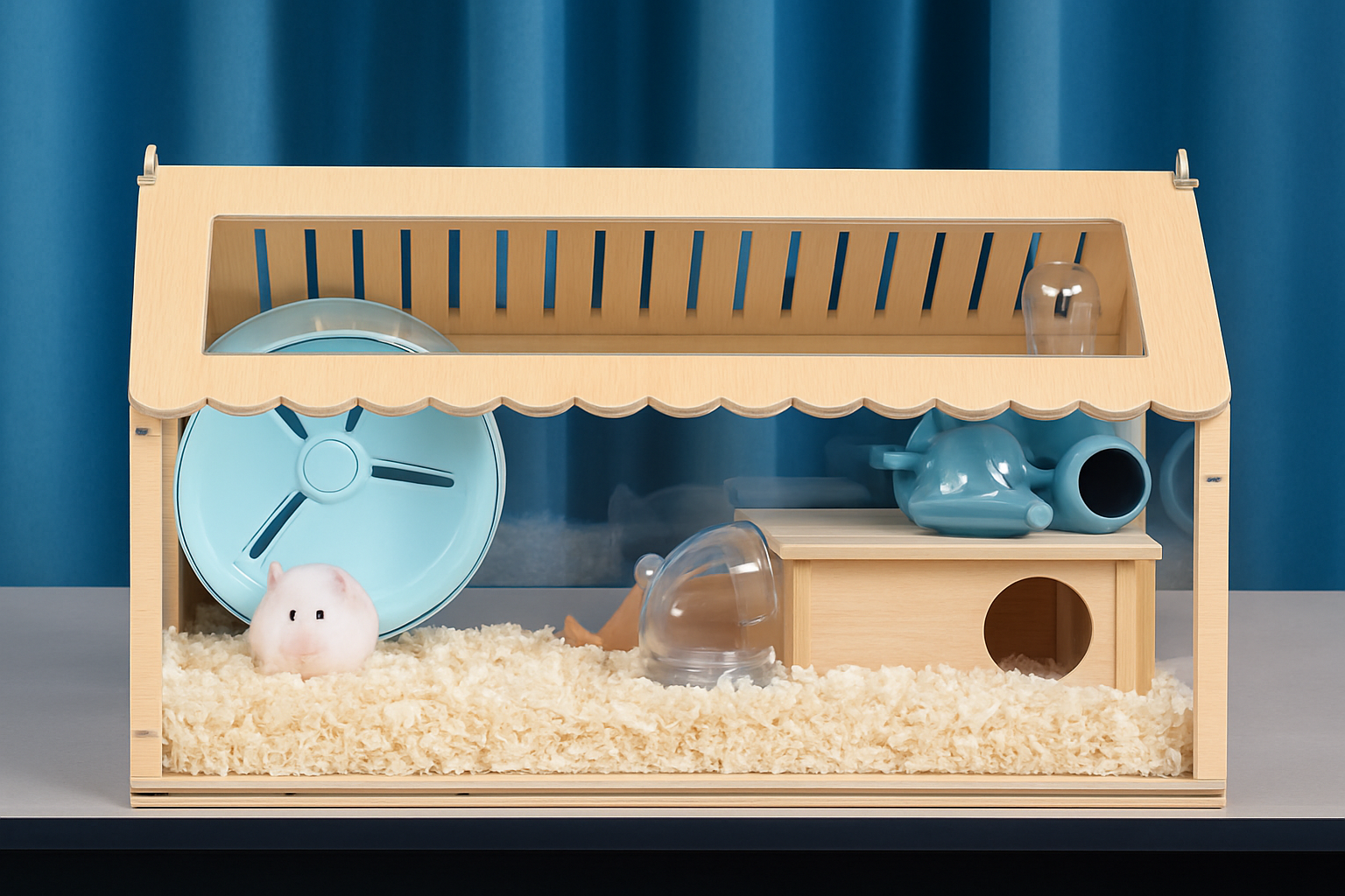 回し車や二階建ての小屋、階段などの充実した付属品で快適な住環境を提供します。