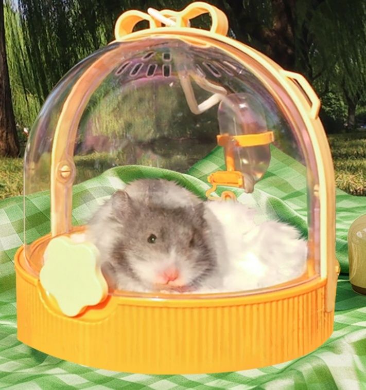 可愛い耳飾り付きの透明ドーム型プラスチック製ハムスターケージです。